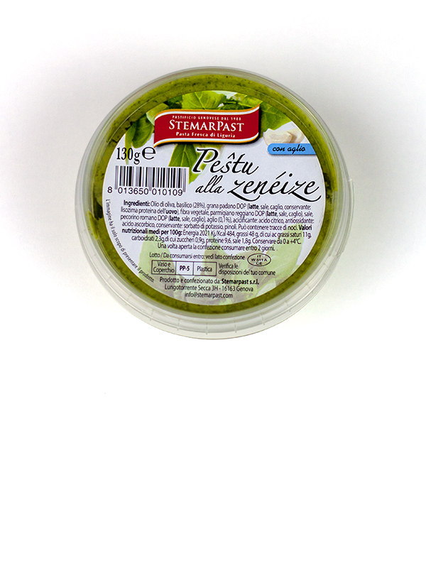 Tra le 2 versioni di Pesto alla genovese presenti in Focacceria Giobatta, questa è la versione «fresca», da conservare in frigorifero.