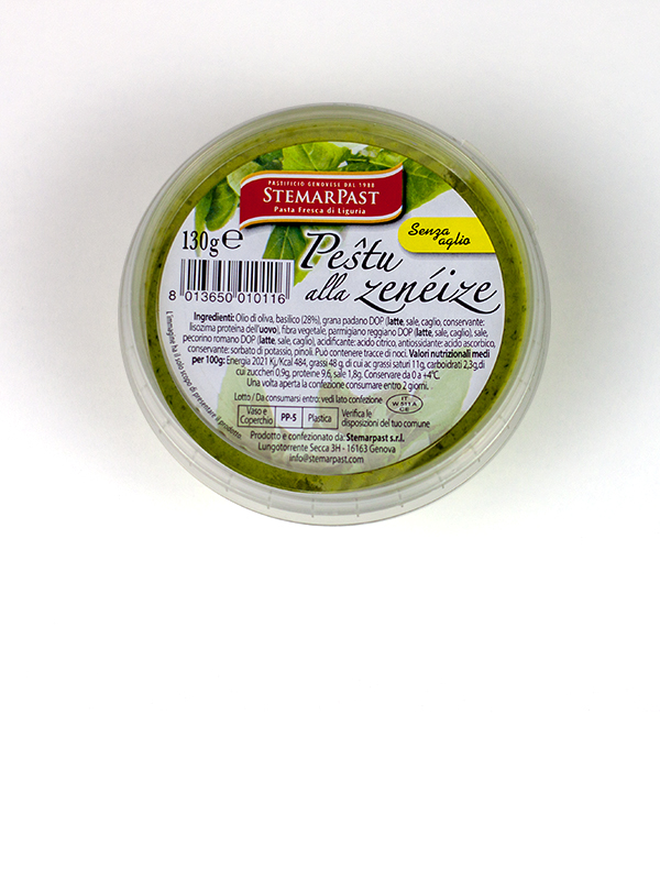 Sempre nell’ambito dei prodotti da conservare in frigorifero, come per la versione «alla Genovese», per soddisfare il gusto di molti clienti abbiamo selezionato anche le versioni «senza aglio» dei nostri pesti.