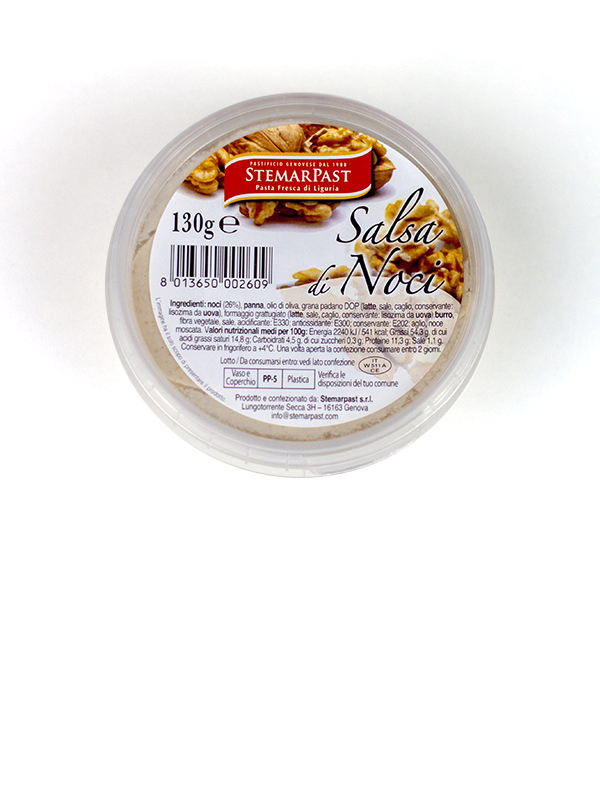 Connubio perfetto con i Pansoti alla ligure, entrambi sono presenti nella nostra dispensa refrigerata; la salsa alle noci tuttavia accompagna molto bene anche molte altre qualità di pasta, oltre a pane e crostini.
